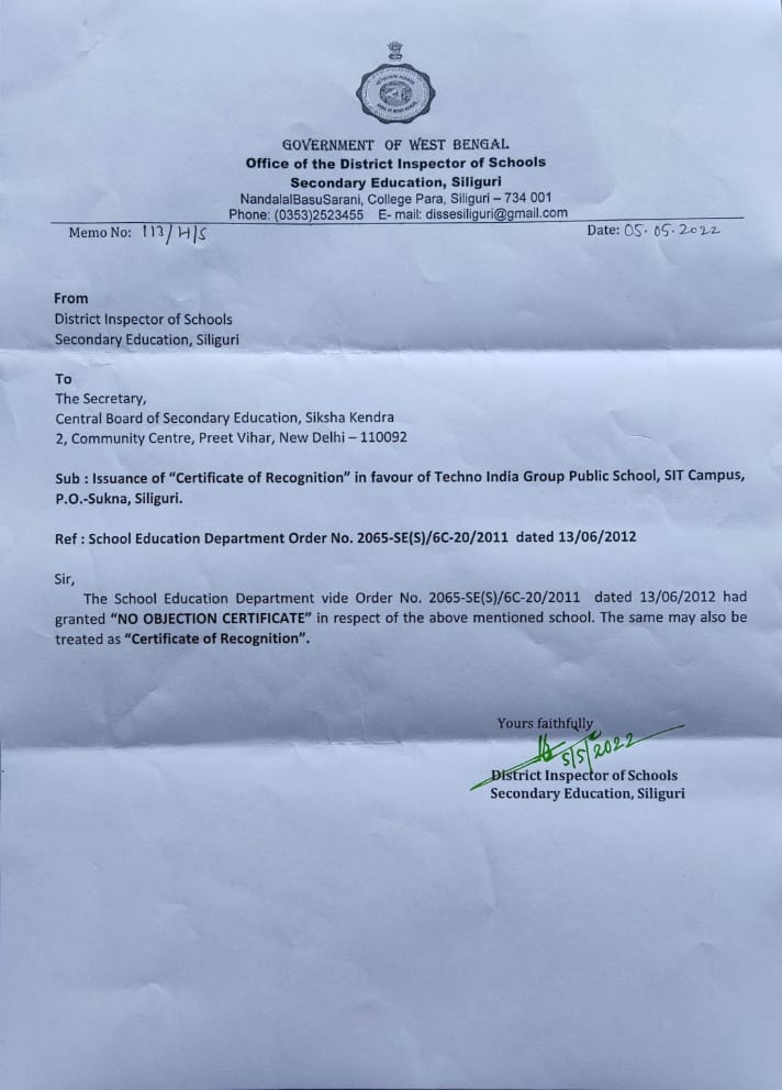 TECHNO INDIA GROUP PUBLIC SCHOOL SILIGURI, HILL CART ROAD, P.O- SUKNA, DARJEELING, WEST BENGAL,PIN CODE: 734009 |